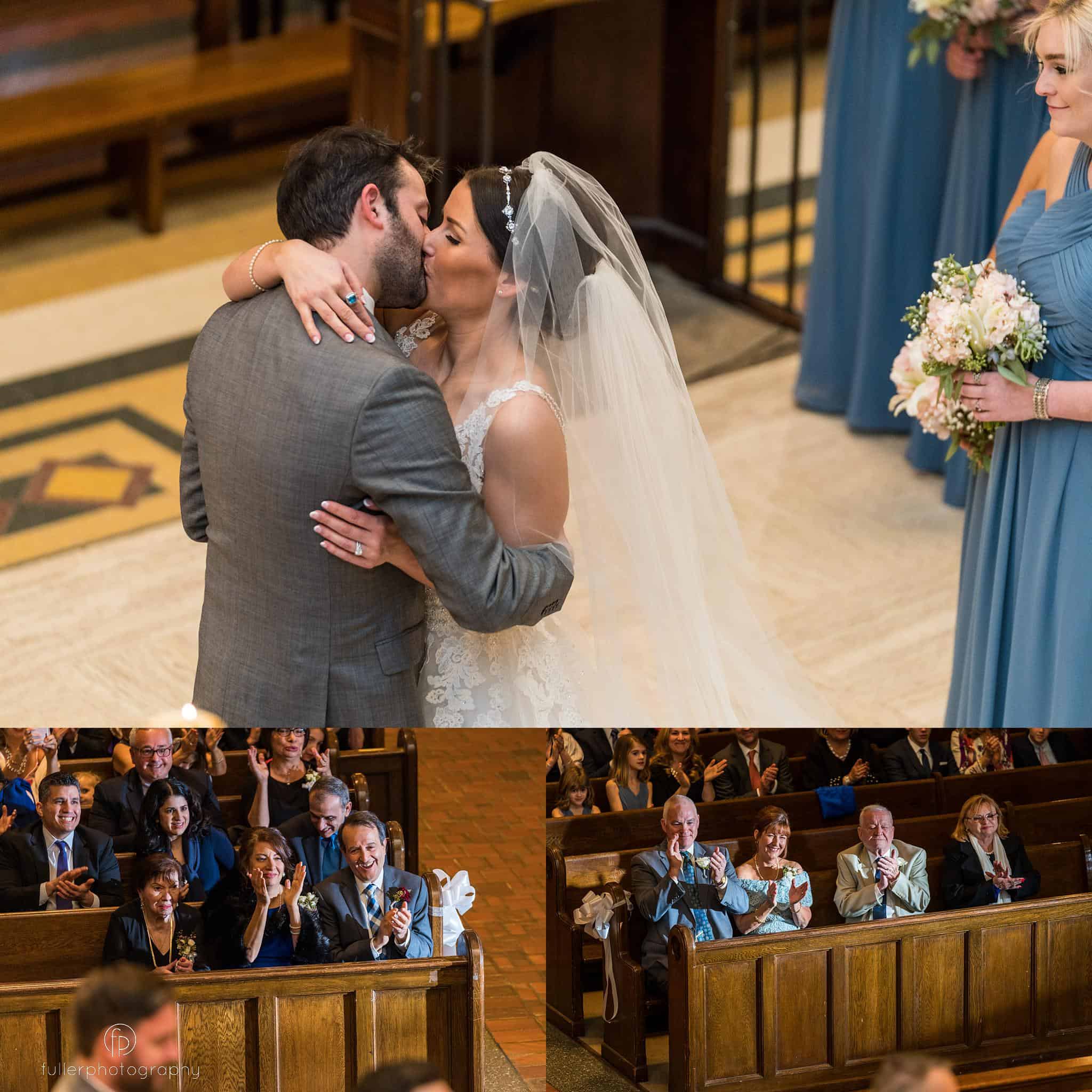 The day started out at the hotel for their prep. Afterward, we traveled on over to St Anthony’s for the ceremony. St Anthony’s is a unique experience for us because it’s one of the rare times during a Catholic ceremony that we’re able to get behind the couple to capture images. You can see below where we’re able to capture the first kiss and the families reactions.