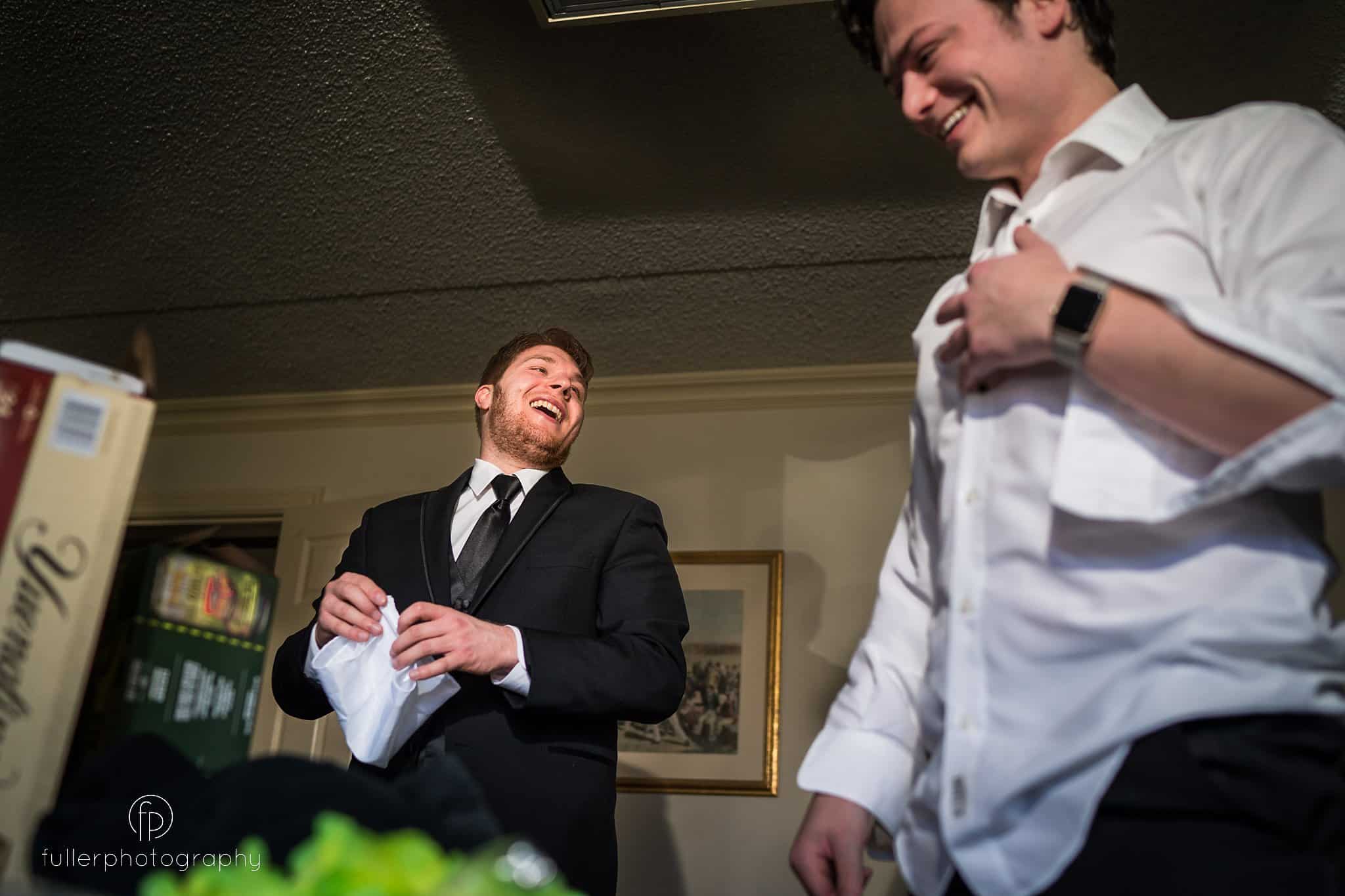 Groom and Groomsmen having fun during their Desmond Hotel Wedding