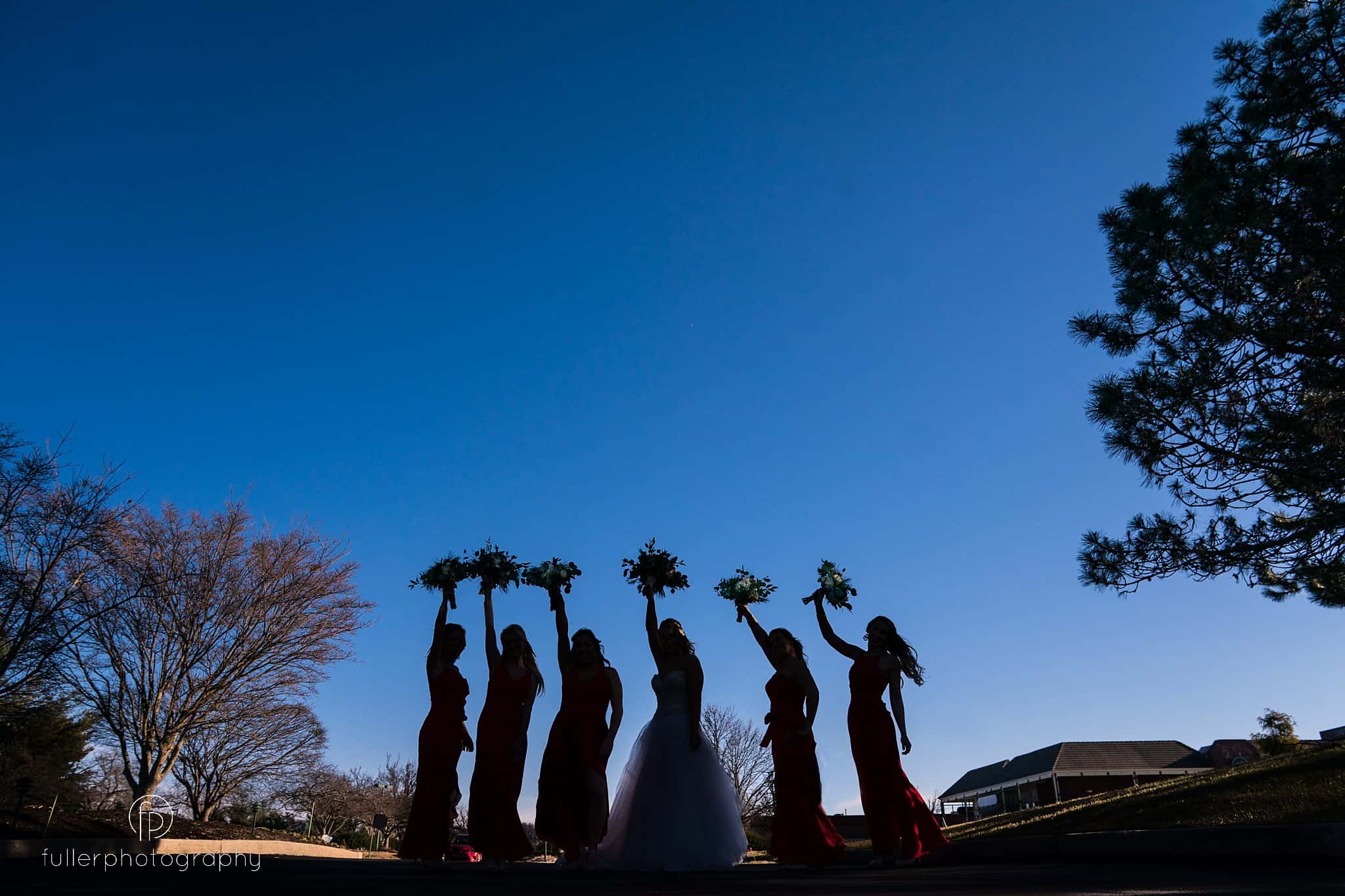 Groom and Groomsmen portrait outside The Desmond Hotel Entrance with a silhouette